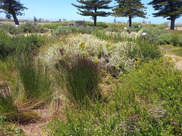 Fynbos education is lacking in most commercial nurseries, but Fynbos LIFE turn it into a feature, and education on the veld types features prominently. Cape Flats Sand Fynbos would have covered a huge area of what is now suburbia. Taking the profit motive out of the equation is very beneficial to biodiversity. It leads to the nurseries growing a suite of plants that build an ecosystem, rather than produce a spectacular show. It also means growing very locally indigenous plants which have co-evolved with the local fauna, and with each other. Insect host plants and other functional niches can be catered for instead of ignored due to the focus on appearance.