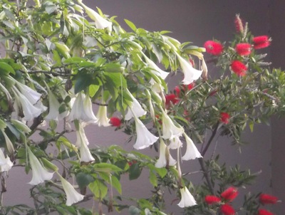 Another genus in this tribe is Brugmansia, with B. candida, the white angel’s trumpet and B. suaveolens, the pink trumpet.