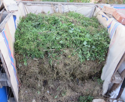 a free harvest of green plant foodI enjoy organic weed control permaculture style. In permaculture weeding isn't even called weeding. Its known as chop 'n drop, referring to the cutting rather than pulling action and then just dropping them where you cut them. On a larger scale, chop 'n drop is a way of managing support plants in food forests in the early stages before the climax vegetation is reached.